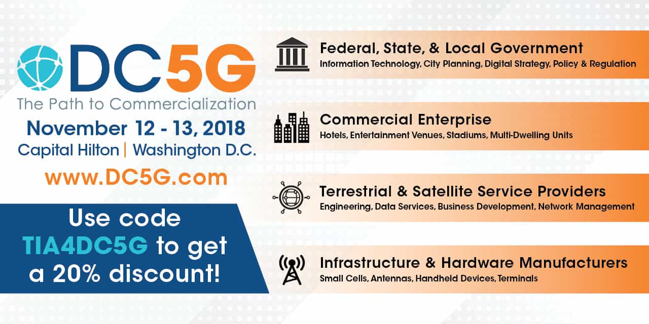 DC5G is the one event that represents the entire 5G-connected ecosystem. Enterprise markets, local municipalities, telcos, industry experts, satellite service providers, device manufacturers, federal policy makers and innovative adopters will gather for the second year to learn about the potential of the next generation of connectivity.